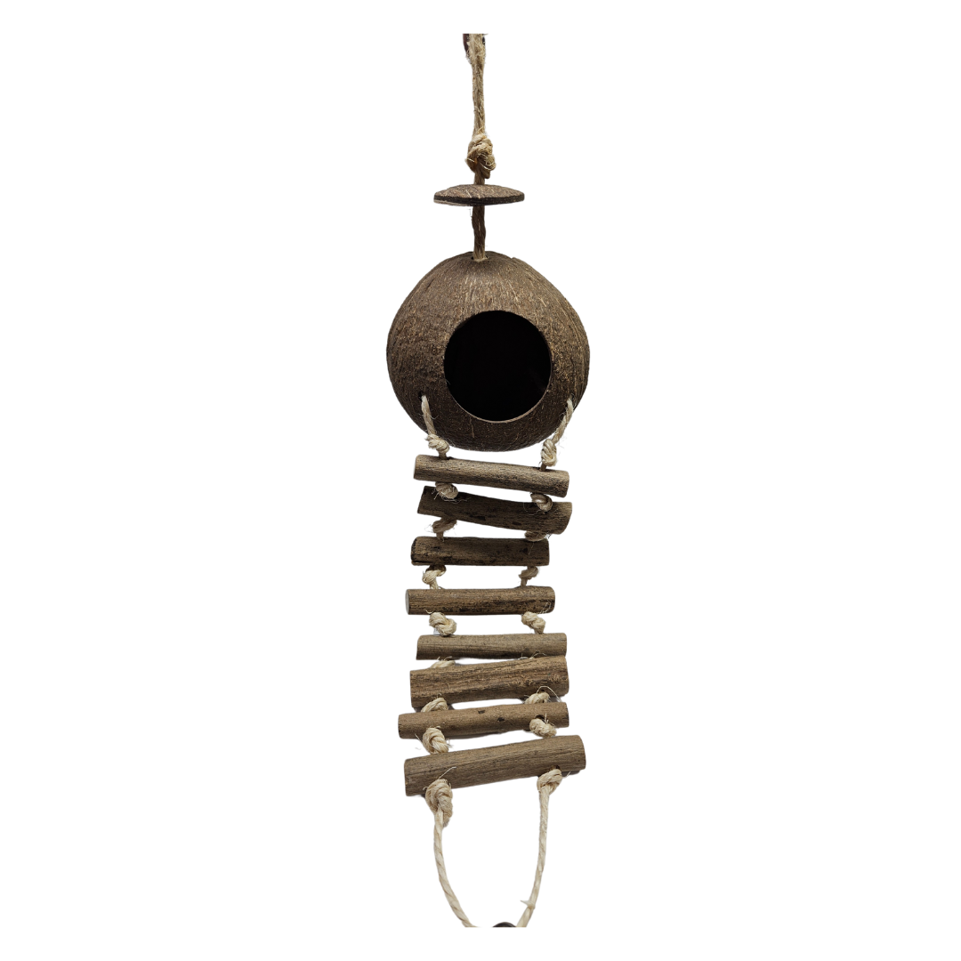 Coconut Bird house with Wood ladder