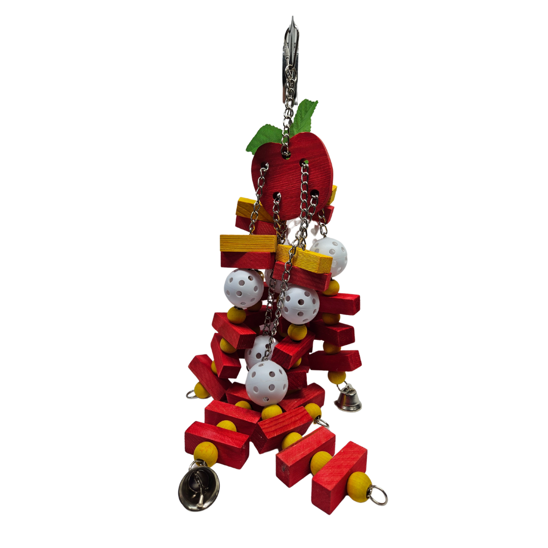This apple-shaped toy is perfect for entertaining your parrot and promoting mental and physical stimulation. Made of durable materials that are safe for your bird to chew and play with. Satisfy your pet's natural instincts with this fun and interactive toy.