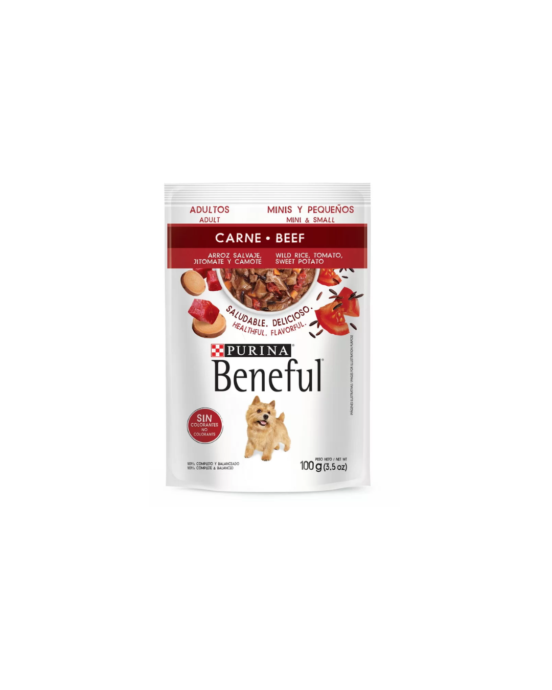 Introducing Beneful Adult Beef Pouch, the perfect meal for your furry friend! This 100g pouch is filled with tender chunks of delicious beef, carefully selected to provide your dog with the protein they need to thrive. Your pup will drool over the savory aroma and irresistible flavor of this premium dog food. Each bite is packed with nutrients and essential vitamins, ensuring your dog gets a balanced diet to support their active lifestyle.