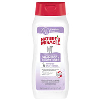 Nature’s Miracle® pet stain and odor removers have been a trusted brand for pet mess cleanup for 40 years. Nature’s Miracle stain and odor removers, virus disinfectants, training aids, litter and waste management and grooming products offer solutions for life with pets, from everyday messes to the toughest cleanup jobs. Whatever pets do, you can trust Nature’s Miracle products to undo. When strong dog odors start to crinkle your nose, it’s time for Nature’s Miracle™ Odor Control Shampoo & Conditioner! The reformulated shampoo helps neutralize odors and freshens with a light lavender scent, without the wet dog smell. Enriched with aloe vera and pH balanced for dogs, this shampoo provides the ultimate grooming experience.