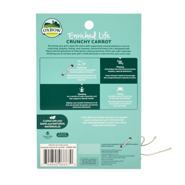 Enriching your pet’s daily life starts with supporting natural behaviors such as exploring, playing, hiding, and chewing. Oxbow Enriched Life is designed with these natural behaviors in mind and is constructed from 100% pet-safe materials, allowing you to nurture your pet’s mind and body in safe and fun ways every day.