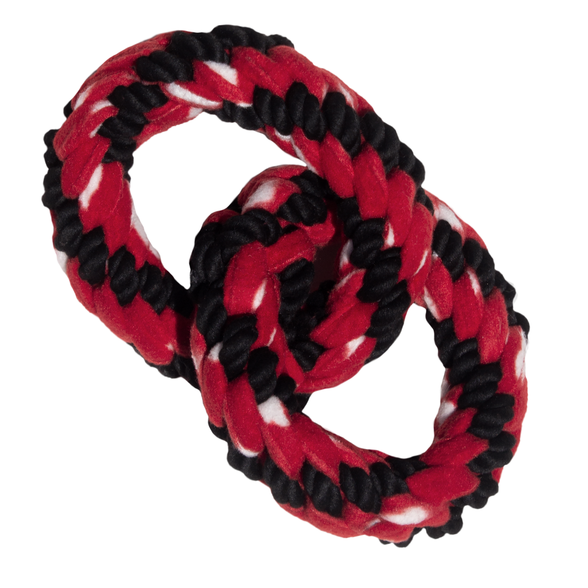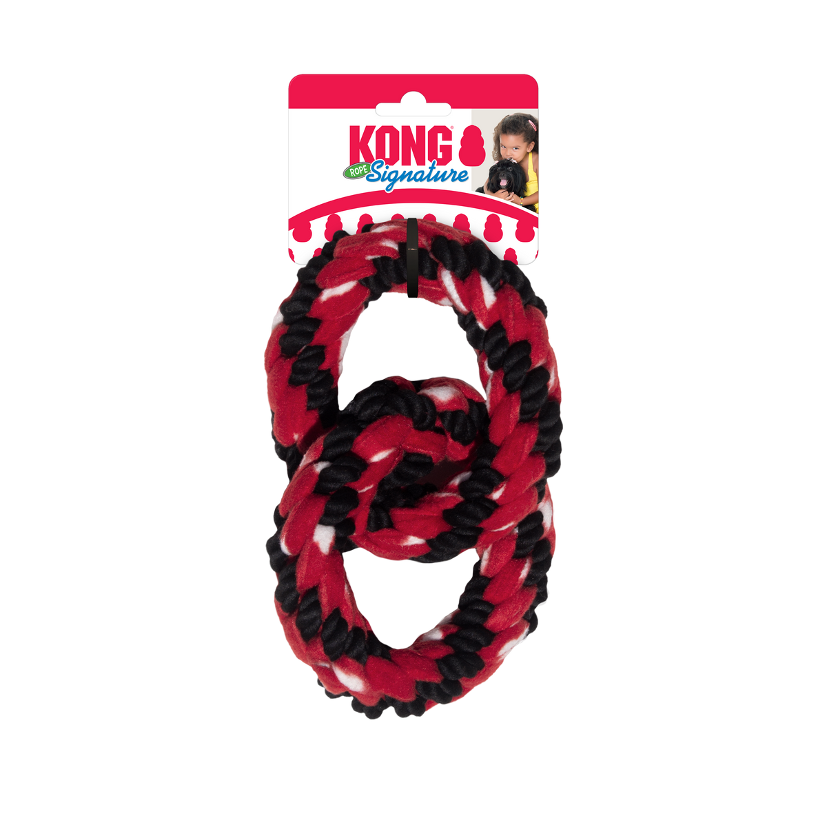 KONG Signature Double Tug Rope doubles the fun with a unique braid of cotton and fleece that provides an uncompromised stretchy delight that is gentler on a dog’s mouth. The durable material ensures that natural chewing behavior is rewarded again and again with the added benefit of helping clean teeth. The double rings multiply interactive playtime by making games of instinctual tugging even more engaging.